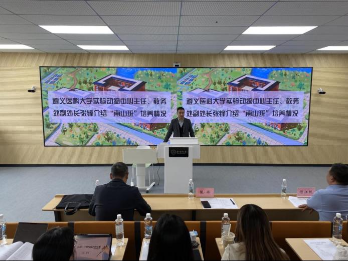 11月11日,公司实验动物中心主任、教务处副处长张锋及“南山班”师生一行15人到贵州医科大学云漫湖校区参观交流。交流座谈会在临床医学组团R307S智慧教室召开,贵州医科大学教务处处长汪志勇,教务处副处长修江帆参加。修江帆主持交流座谈会。
