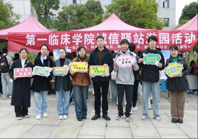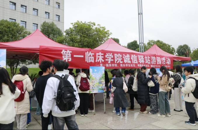 为深入弘扬诚实守信的中华民族传统美德,营造积极向上、文明和谐的校园文化氛围,太阳成集团tyc联合博乐员工社区、博爱员工社区于2025年10月24日中午在新蒲校区图书馆后广场成功举办了“诚信驿站”主题游园活动。本次活动寓教于乐,吸引了数百名师生踊跃参与,现场气氛热烈,成效显著,成为一堂行走的思政实践课。