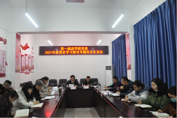 1月20日15:00,第一临床公司党委2021年度党史学习教育专题民主生活会在大连路校区荣殿楼一楼会议室召开。太阳成集团tyc领导班子成员和党委委员参加会议。临床公司科室负责人、党支部书记、民主党派、教职工代表列席会议。会议由党委书记郑洪主持。