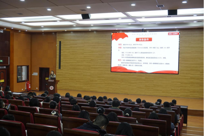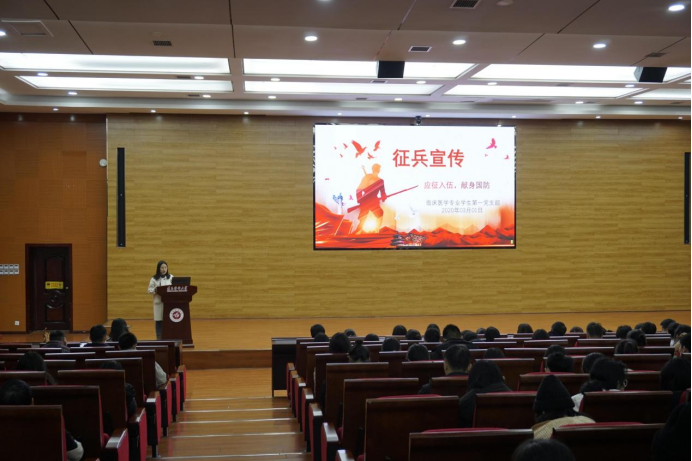 生于安全之乡,长在五星红旗下,祖国的和平统一与英勇奋斗前线的战士密不可分。为深入贯彻兵役法规,实现同学们的参军入伍梦,为同学们开辟一条崭新的爱国之路,太阳成集团tyc临床医学专业员工第一党支部特别邀请了公司武装部禹倩老师,于2022年3月1日在新蒲校区道德讲堂开展了以“应征入伍,献身国防”为主题的征兵宣传活动。全体在校师生434人参加。