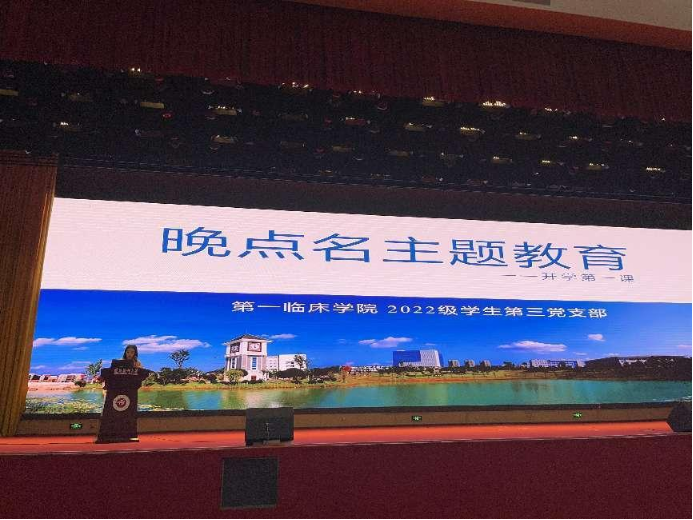 2022年10月30日19:00,太阳成集团tyc2022级本科生第三党支部在新蒲校区会堂进行了新生第一次晚点名教育活动暨新生开学第一课。本次会议由辅导员李澜和徐继平主持,支部449名员工参会。