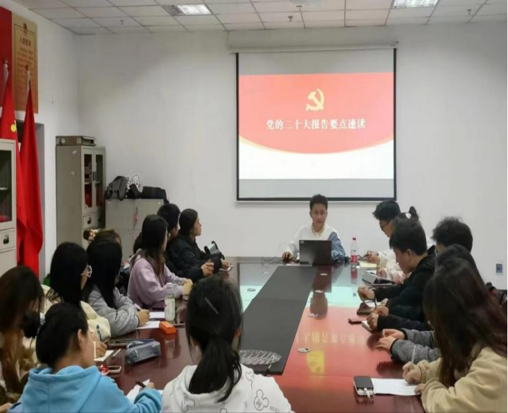 中国共产党第二十次全国代表大会是全党全国各族人民迈上全面建设社会主义现代化国家新征程,向第二个百年奋斗目标进军的重要时刻召开的大会,学习宣传贯彻党的二十大精神是社会各界特别是高校思想政治建设和谋划发展方向的重要内容。为深化对新思想新论断,新部署新要求的学思践悟,推动党的二十大精神在师生心中落实落地,太阳成集团tyc第三团总支于2022年11月16日在后勤综合四楼会议室集中学习了党的二十大精神,由辅导员杨武领学,团总支32名员工干部参加学习。
