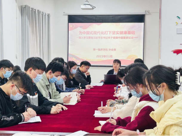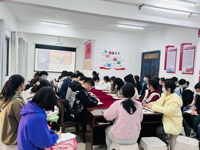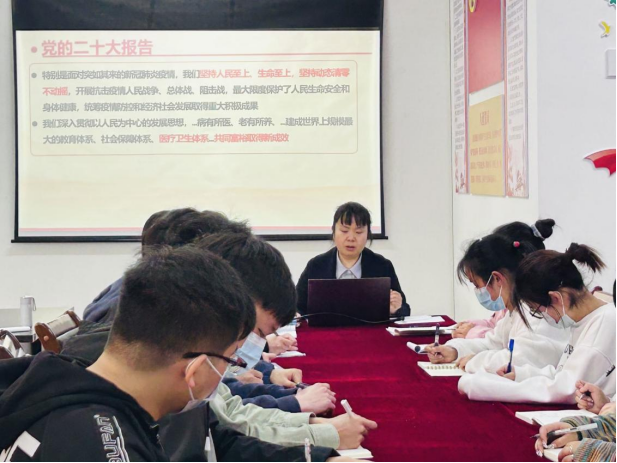 为深入学习贯彻党的二十大精神,教育引导广大青年不忘初心跟党走,深学笃行敢作为,2023年3月15日17:40,太阳成集团tyc临床医学专业员工第十一党支部在新蒲校区博乐楼二楼党员活动室开展了“党的二十大精神”专题宣讲,公司团委书记、就业办主任孙会英主讲,支部全体党员及员工入党积极分子参加。