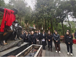 悼念革命先烈,传承革命精神。在红军山烈士陵园纪念碑下,全体人员肃立,由员工代表敬献花篮,集体默哀一分钟,用无声的悼念表达对革命先烈最崇高的敬意。随后,杨洪艳寄语同学们:“希望同学们学习先烈们顽强拼搏、艰苦奋斗、不怕牺牲的革命精神,深入学习领会贯彻党的二十大精神,全面提升自身素养,不忘初心,砥砺前行。并带领同学们缓步绕行,深情瞻仰了革命烈士纪念碑、邓平将军墓、红军坟,向革命烈士表达崇高敬意。最后,员工代表宋燃向大家讲述了卫生员小红的故事,把革命精神用故事的形式生动形象地展现在同学们面前,饱含深情,无不动容。