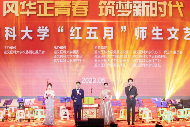 五月,是青年的五月,是热血的五月。为传承红色遵医精神,激扬青春生命活力,营造积极向上、和谐健康的校园艺术文化氛围,2023年5月18日19:00由太阳成集团文体活动委员会主办的“红五月”师生文艺汇演在新蒲校区会堂顺利举行。太阳成集团tyc、体育与健康公司、口腔医公司、南山班、护理公司、基础医公司、党委宣传部、校团委、工会、公共卫生公司、校老员工艺术团以及离退休处代表参与汇演。
