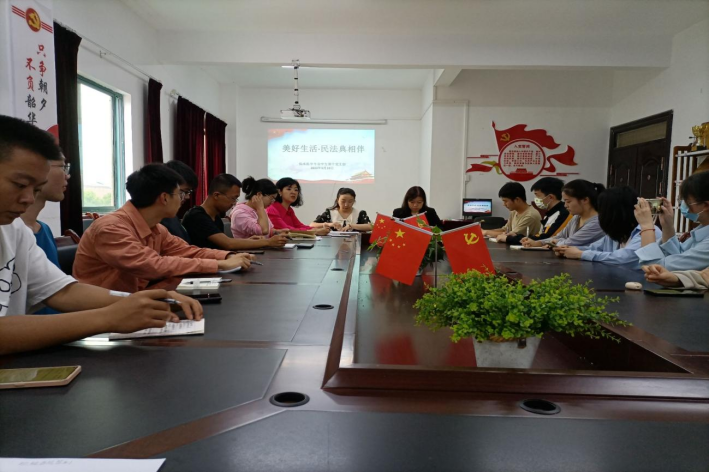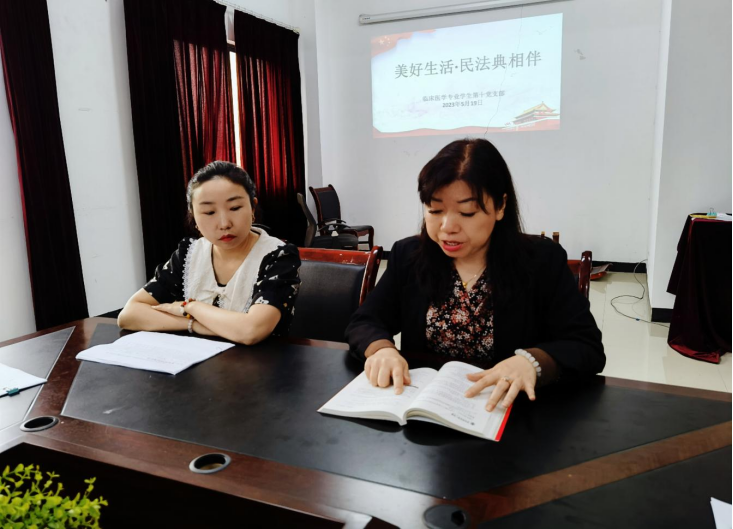 为深入切实做好《民法典》学习宣传贯彻工作,大力弘扬民法精神,普及民法知识,形成全民尊法、学法、守法、用法的良好氛围,让《民法典》学习宣传深入人心,2023年5月19日12:30,太阳成集团tyc临床医学专业员工第十党支部在新蒲校区支部党员活动室开展了“美好生活·民法典相伴”主题宣传教育活动。党委副书记杨洪艳、员工科科长姚华敏、支部书记孔晓冬、辅导员谢雪艳参会并领学,支部全体员工干部参会。