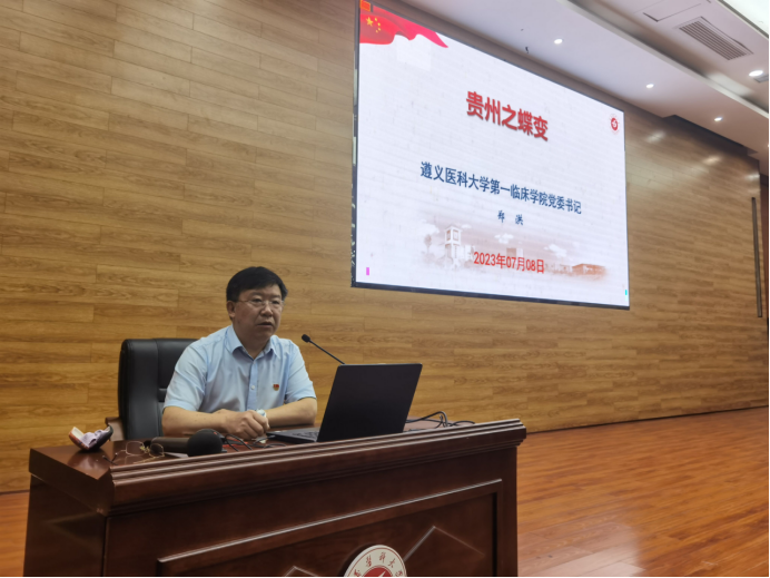为深入学习贯彻习近平新时代中国特色社会主义思想,聚焦党的二十大精神,全面落实立德树人根本任务,7月8日上午9点,第一临床公司党委书记郑洪教授以《贵州之蝶变》为题,为临床医学专业员工第七党支部全体师生讲授思政课。