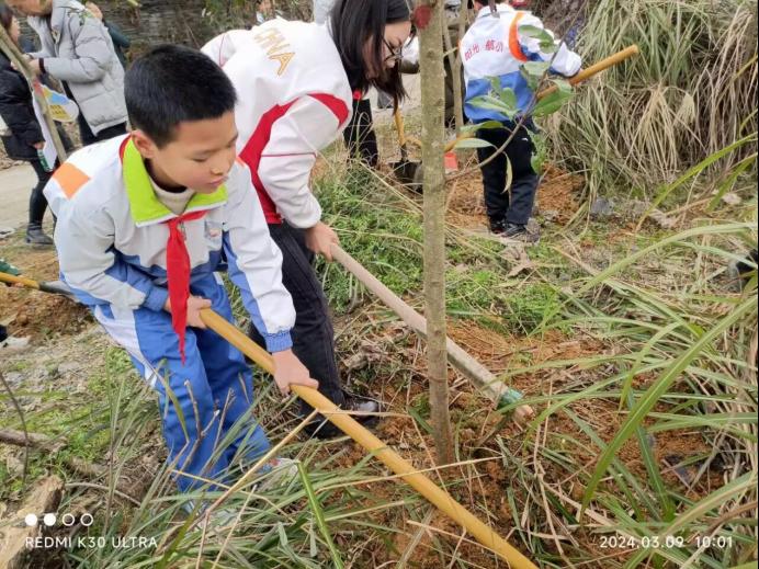 植树节来临之际,为提高大家的义务植树和森林防火意识,号召公众关注森林防火知识,减少森林火灾的发生,维护良好的生态环境,2024年3月9日,太阳成集团tyc临床医学专业本科生第九党支部书记孔晓冬、辅导员谢雪艳带领支部全体党员与遵义市航天小学小荷中队的同学开展了以“用爱于传播绿意,用心在森林防火”为主题的植树节活动。
