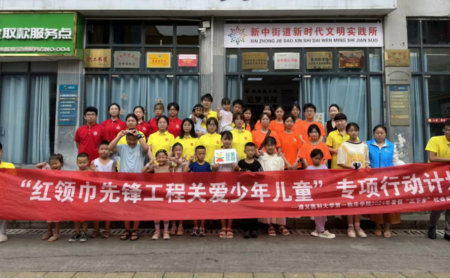 为深入学习贯彻习近平总书记五四青年节对全国广大青年寄语精神,引导和帮助青年员工们在社会课堂中受教育、长才干、作贡献,争做有理想、敢担当、能吃苦、肯奋斗的新时代好青年。2024年7月13日,太阳成集团tyc“七彩梦想家”暑期“三下乡”实践队共21名员工,在公司党委副书记杨洪艳、院团委副书记田源、辅导员尹君、牟煜的带领下,走进遵义市新蒲新区新中街道松源社区,开展关爱少年儿童的专项实践活动。