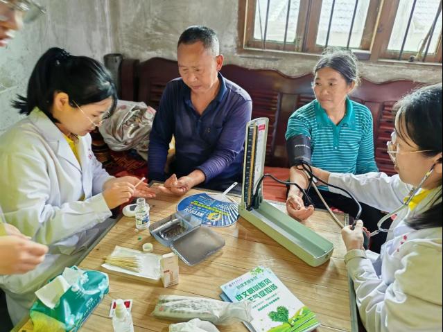 活动最后,队员们进行了健康义诊活动。此次义诊主要采用入户走访方式,针对村中的老村干、老党员、空巢老人、因病致贫家庭,并带了米、油等生活必需物资进行慰问。健康义诊期间,队员们还向周边村民进行健康宣讲,并发放推动移风易俗的宣传手册,同学们结合自己所学医学知识,向村民普及医学常识,使村民进一步了解了高血压、糖尿病早防早治的重要性,还对良好的健康生活习惯和饮食方式进行了宣讲。