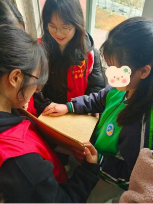 在交流互动环节,志愿者为孩子们送上慰问品:水果、袜子、生活用品等。随后大家围坐成圈互动交流,孩子们给志愿者们展示他们的爱好——吉他、B-box、京剧……,还有一位小朋友告诉志愿者她最喜欢的科目就是语文,在志愿者为她捧起厚厚的书本上,小朋友细细感受着指尖下的文字,和大家分享她喜欢的诗歌。