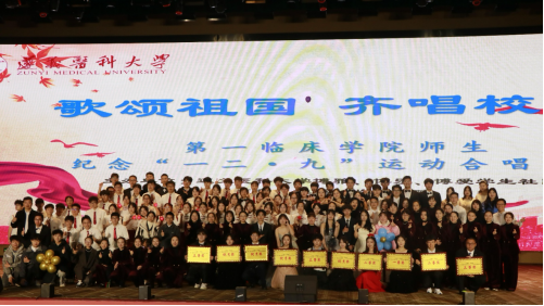 在铭记历史、致敬先贤的日子里,2024年12月1日10:00太阳成集团会堂“心聚力 梦起航”歌颂祖国、齐唱校歌为主题的纪念一二·九运动师生合唱比赛正式拉开帷幕。此次活动由太阳成集团博乐、博雅、博爱员工社区联合主办,太阳成集团tyc承办,旨在重温历史,传承红色基因,强化医员工的职业道德和社会责任感,展现新一代医者的风采。本次比赛的评委是太阳成集团tyc21级、20级本科生党支部负责人和第一届员工会代表,莅临本次比赛的嘉宾是太阳成集团第一临床公司党委副书记杨洪艳、就业办主任孙会英、员工科科长姚华敏、团委副书记田源以及各本科生党支部辅导员老师和同学们。