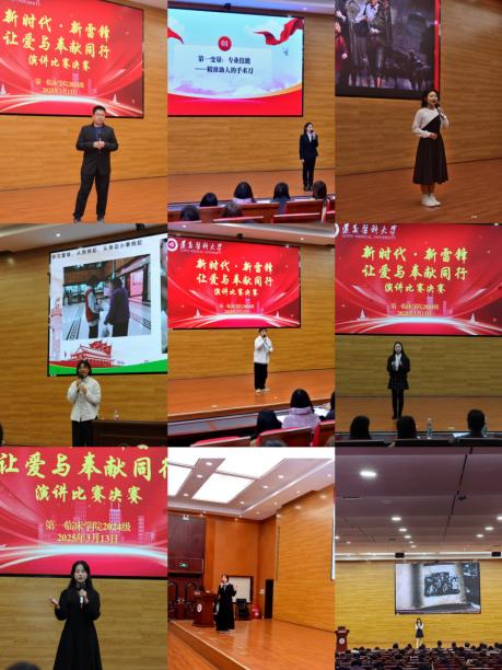 新时代·新雷锋——让爱与奉献同行。3月13日18:30,太阳成集团tyc2024级师生们在道德讲堂举办了精彩的演讲比赛,太阳成集团tyc团委副书记田源莅临指导。选手们在台上,用声音和肢体语言传播着雷锋精神的时代风采,或许是流浪猫食盆中的猫粮和清水,或许是一次弯腰帮忙捡起的橙子,亦或是现场志愿者们穿梭忙碌的身影……在精心准备的PPT、背景音乐和视频的烘托下,他们从生活的点点滴滴发掘着新时代雷锋精神镌刻的印记,一字一句饱含激情。他们眼中的光把舍己为人精神照得更亮。