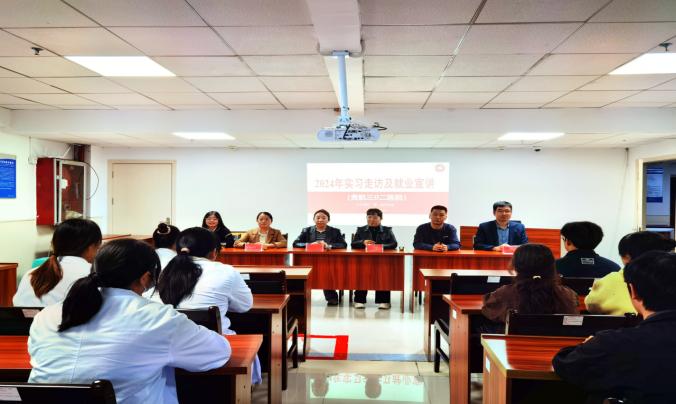 走访小组还深入到食堂、宿舍等地,实地查看了员工的学习、工作、生活情况,并与员工进行了座谈交流。座谈会上,党委副书记杨洪艳对实习生给予了深切关怀和肯定,勉励同学们要把理论知识与实践结合起来,多学、多听、多感悟,牢记“明德笃学 求是致用”的校训,在自己的工作岗位上做出优异的成绩。会上,杨洪艳带领同学们深入学习领会了党的二十届三中全会精神,认真领悟全会就进一步全面深化改革、推进中国式现代化作出的战略部署。就业办主任孙会英进行了就业宣讲,详细介绍了就业形势、就业政策和就业渠道等,极大鼓励了同学们的就业信心,激起了同学们的就业热情。员工科科长姚华敏则围绕就业安全、职业防护、医患沟通、网络安全等方面,开展了安全教育,结合身边具体案例,帮助同学们提高安全意识。各支部辅导员在与同学们沟通交流中,整理收集了大家在实习期间的困难和建议,并通过教务科进行了反馈。