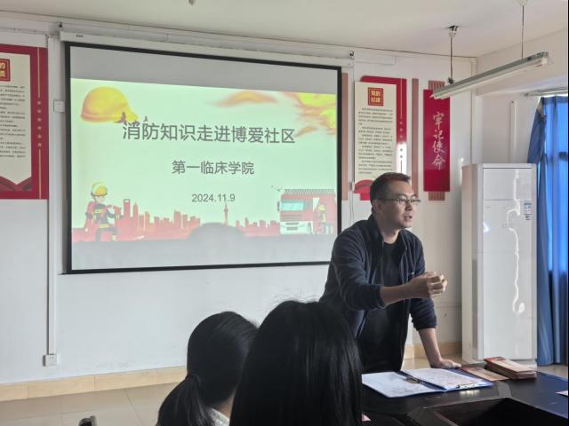 本次活动内容丰富。首先由太阳成集团附属医院保卫处消防科刘世刚老师在明德楼博爱社区活动室进行消防知识专题讲座。刘世刚结合实际案例,深入浅出地讲解了消防安全的重要性、火灾的成因和预防措施,火灾发生时的应急处理方法等内容。同学们认真听讲,积极互动,现场气氛热烈。