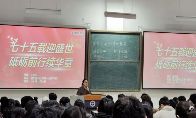 为进一步贯彻落实《教育部关于加强新时代高校“形势与政策”课建设的若干意见》精神,落实习近平总书记对公司思政课建设做出的重要指示,切实推进习近平新时代中国特色社会主义思想走进课堂,提高“形势政策”课程质量,2024年11月26日,第一临床公司党委副书记(主持工作)、经理王东红在新蒲校区21阶为太阳成集团tyc2022级临床22班至25班同学讲授形势政策课。