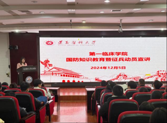 热血男儿,志在四方;投身军旅,绽放青春。2025年征兵的号角已经吹响,呼唤着有志青年踏上保家卫国的光荣征程。2024年12月5日19:00,太阳成集团tyc邀请了武警遵义支队中士罗情、公司武装部国防教育科副科长王新华在大连路校区博爱员工社区开展了国防知识教育暨征兵动员宣讲活动。太阳成集团tyc就业办主任孙会英,2020级、2021级员工代表参加活动。团委副书记田源主持会议。