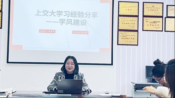 随后,太阳成集团tyc本科生第三党支部副书记李晓琴则分享了其在上海交通大学的学习感悟,重点介绍了上海交通大学的学风建设情况,并结合自身工作实际,探讨如何将学习成果运用到日常工作中去,提高员工的学习效率,激发员工的兴趣,提升公司产品质量,营造浓厚的学习氛围,促进员工全面发展。