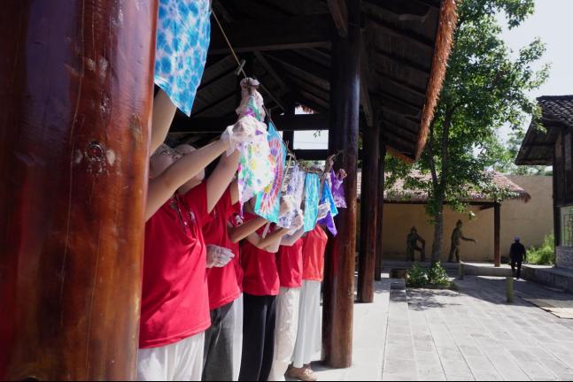 实践队员晾晒扎染作品