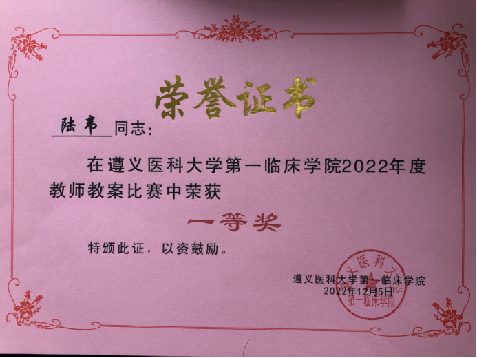 祝贺公司陆韦教授在太阳成集团tyc2022年度教师教案比赛中获“一等奖”!