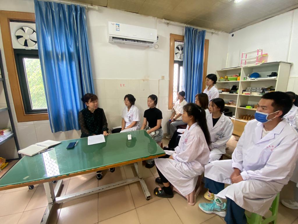 交流会结束后,杨洪艳副书记一行来到康复作业治疗室,与康复治疗学专业的实习同学们进行了互动交流,了解他们在实习期间的住宿、用餐、轮转、带教和岗位适应等情况,并重点强调了公司相关规章制度的重要性。希望同学们能服从公司和医院的统一管理,顺利完成实习任务。