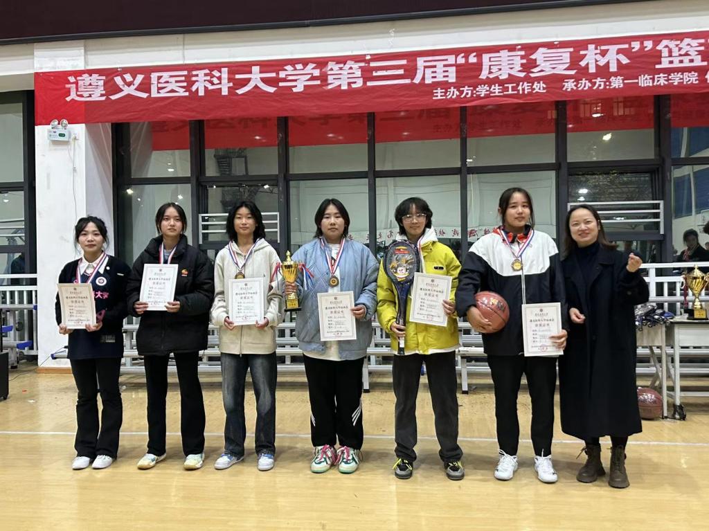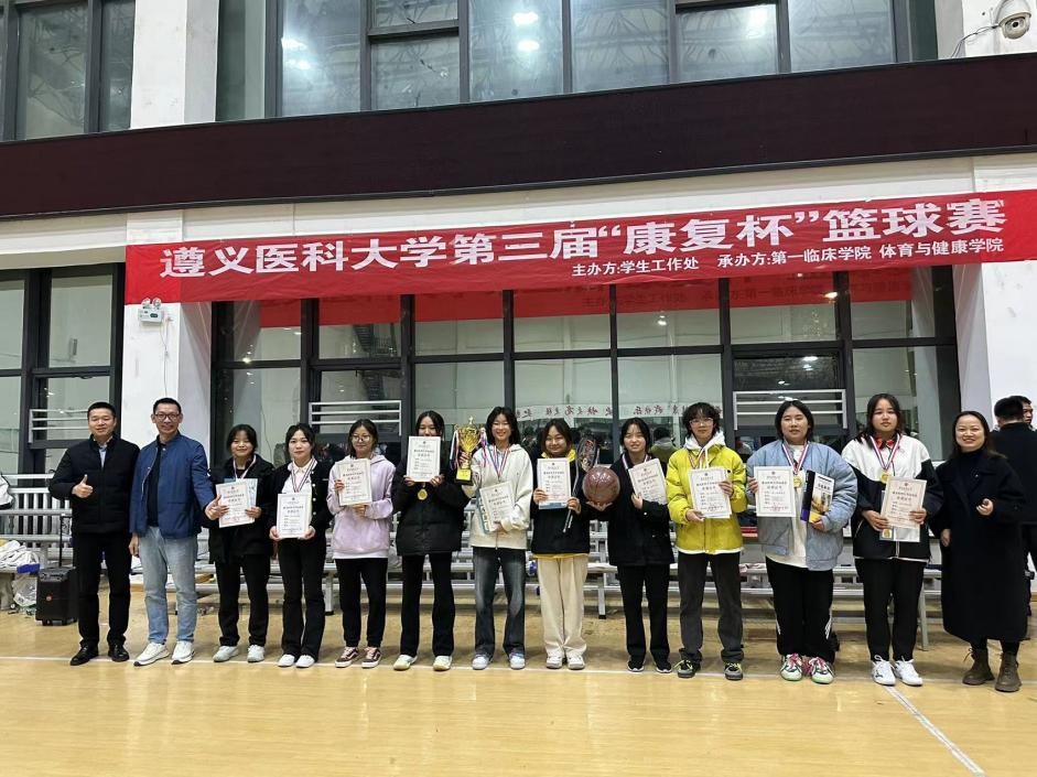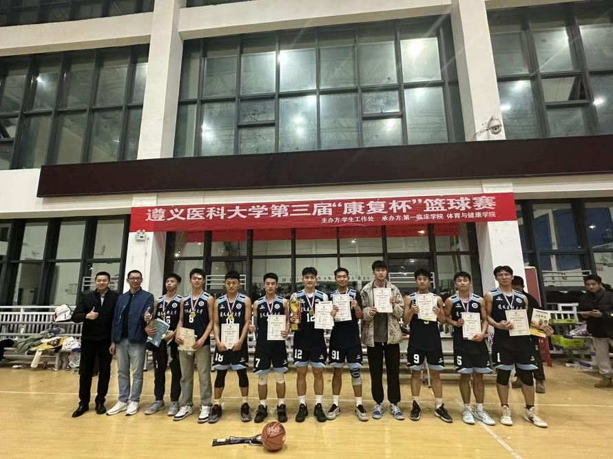 闭幕式由崔德涛老师主持,体育健康公司唐溢副书记对本次篮球赛致闭幕词,他说“这是遵医康复第三届‘康复杯’赛事,以后每年都会继续举办。这是增强同学们团队协作能力,培养德智体美劳全面发展的遵医康复人。促进遵医康复员工之间、师生之间的沟通交流的一种方式,更是提升同学们对遵医康复大家庭归属感的一种方式 ”。最后,唐溢副书记、冯祥勇主席、男教工队队长崔德涛老师、女教工队队长袁明琼老师为获奖队员颁发了奖杯和奖牌,以表彰他们的优异表现和努力付出。第三届“康复杯”篮球赛历时19天圆满结束了,通过此次比赛,增强了员工体魄、促进了康复相关专业的相互沟通交流、培养了员工团队协作意识,并提高了员工对遵医康复的归属感,期待未来类似的活动能够继续举办,为员工们带来更多的收获和成长。