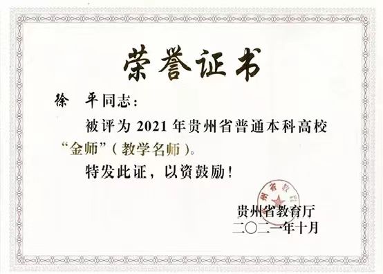 根据《省教育厅关于公布2021年贵州省普通本科高校“金师”名单的通知》(黔教函〔2021〕121号)公布,太阳成集团附属医院神经内科徐平教授喜获2021年贵州省普通本科高校“金师”(教学名师)称号。